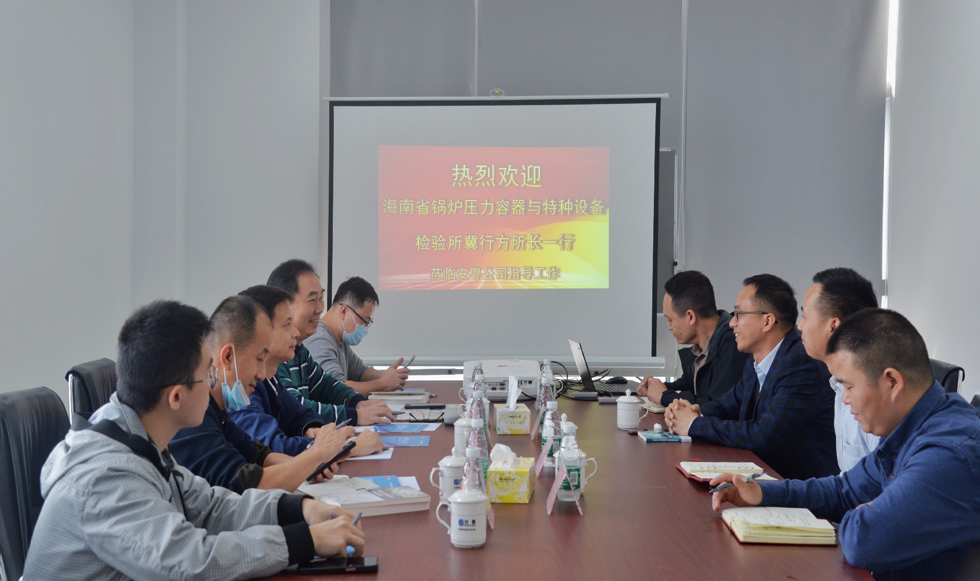 3月1日上午,海南省鍋爐壓力容器與特種設(shè)備檢驗(yàn)所冀行方副所長(zhǎng)等一行5人到安粵公司參觀指導(dǎo)工作。