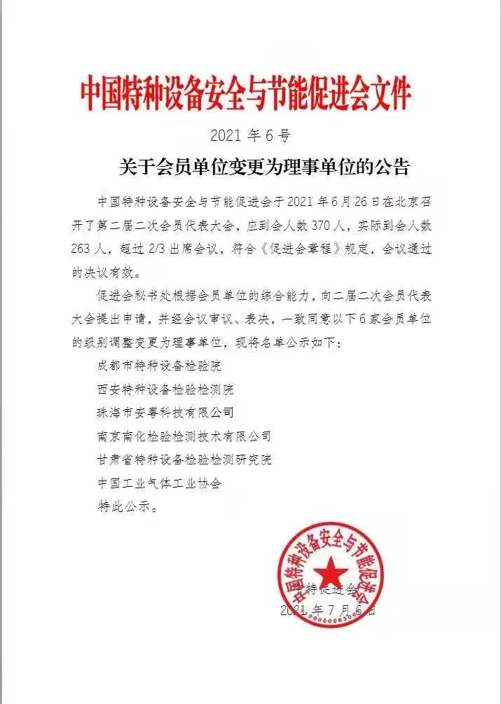 安粵公司入選中國特種設(shè)備安全與節(jié)能促進(jìn)會(huì)理事單位