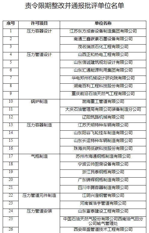 (二)責(zé)令49家特種設(shè)備生產(chǎn)單位和檢驗(yàn)檢測機(jī)構(gòu)(詳見附件2)限期整改,并通報(bào)批評。上述單位應(yīng)按要求對監(jiān)督抽查備忘錄中的問題項(xiàng)目認(rèn)真整改,并將整改情況報(bào)送當(dāng)?shù)厥袌霰O(jiān)管部門。上述單位下一許可周期不允許申請自我聲明承諾換證。